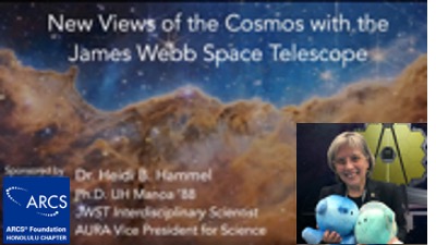 "Hubble gave us high school yearbook pictures of the universe; Webb is giving us the baby pictures. It is by putting them all together that we try to understand how the universe formed and evolved to where we are today." Only half of the important science thus far generated by Hubble was planned prior to launch, she notes. Now astronomers find themselves "on the edge of a firehose" of data with JWST and just getting started. "I don't even know what the most amazing science is going to be," she says. "It's a new era of astronomy starting now. I don't know where it is going to lead, but it is quite an amazing ride and I'm so thrilled to be a part of it. Thank you ARCS for helping me when I was a young student in Honolulu."